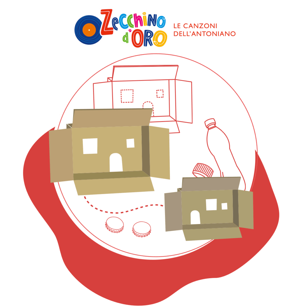 A casa e a scuola raccogliete materiali di scarto di piccole dimensioni, come tappi, scatole, retine, bottiglie di plastica e contenitori. Per iniziare a costruire, scegliete una scatola di cartone e trasformatela in una casetta, ritagliando porte e finestre e dipingendola a piacere. Utilizzando gli oggetti raccolti, arredatela a piacere e caratterizzate l’interno della casetta incollando i materiali con la colla vinilica dove preferite. Infine, sistemate la casetta di cartone nella vostra cameretta o in aula a scuola, se l’avete costruita insieme ai vostri compagni.